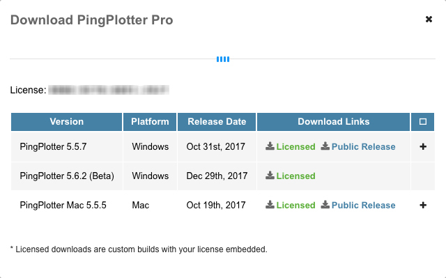 - Public Release downloads are available for those times when you need to download a version of PingPlotter without built-in license information (e.g. deploying to a client's computer). For some older versions, this is the only available option.
