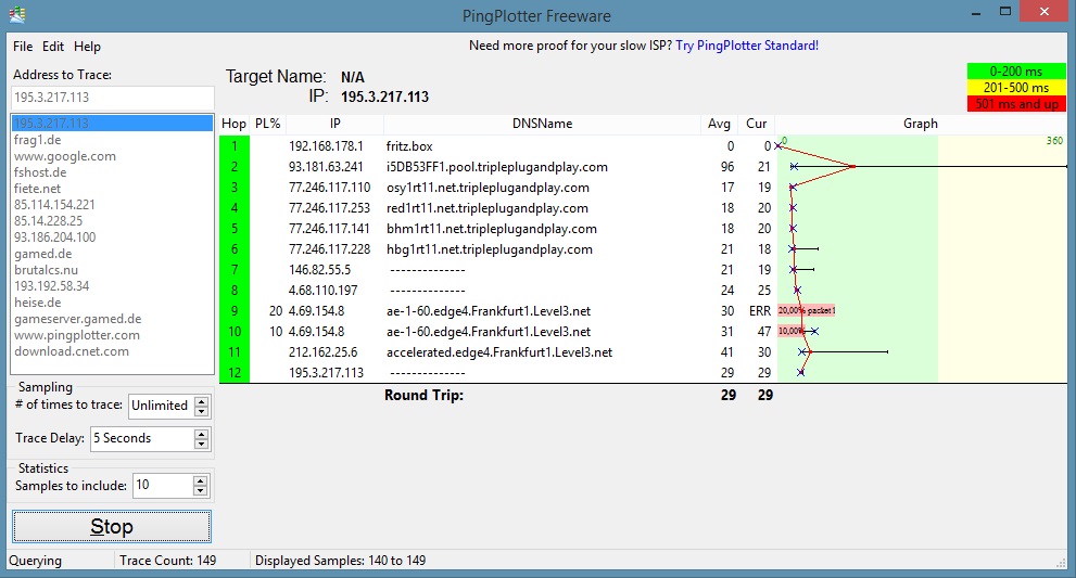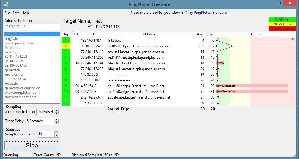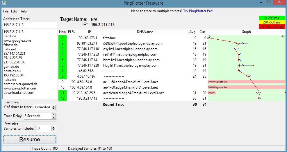 It does indeed look like you've got some packet loss occurring at your final destination here - but, it *also* looks like you've got some loss occurring at earlier hops as well. There was an event at 10:40pm where it looks like there was loss across the board (did you by chance reset your router here?) - but past that, you've got some intermittent loss occurring on hops #3-12. You can see this in a bit more detail by opening up some timeline graphs for your earlier hops (you can either double click on a hop, or right click and select "Show this timeline graph").