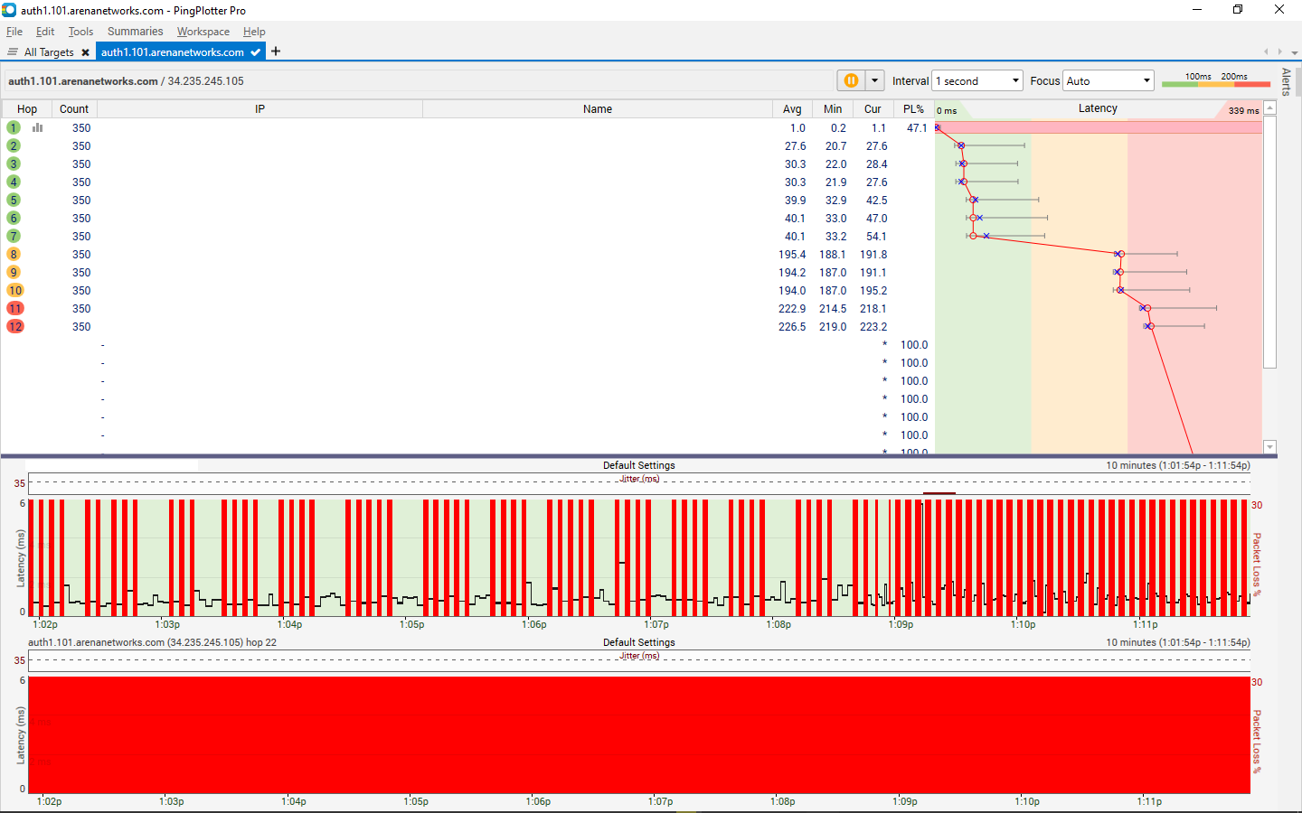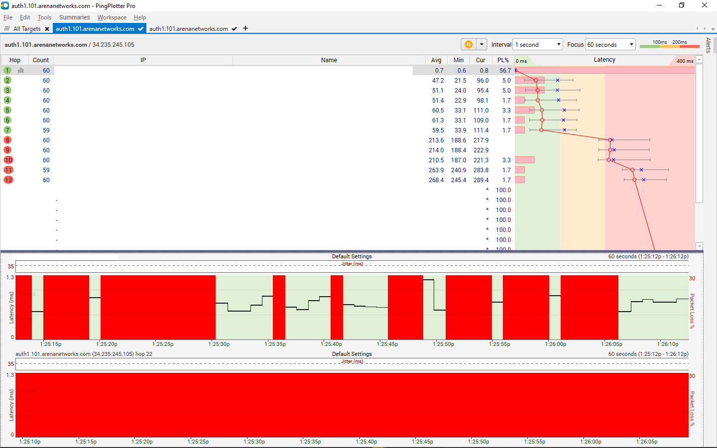The first thing that I usually recommend is to leave PingPlotter running a trace to your gaming server, continually (24x7 is ideal). Play your game as normal, and when you notice lag, make a note of it somewhere. Here, your goal is to correlate the issues you're having to PingPlotter data, so when you're done playing the game, head back to PingPlotter and track down the times that correlate with the ones you made a note of. Can you see any "problem patterns" in PingPlotter at that time? If so, this can help point you towards which device(s) may be giving you issues along the way. I'd like to point you towards a page we have detailing a great way to get started on deciphering results for gamers (for after you've correlated a time in PingPlotter to the time you wrote down):