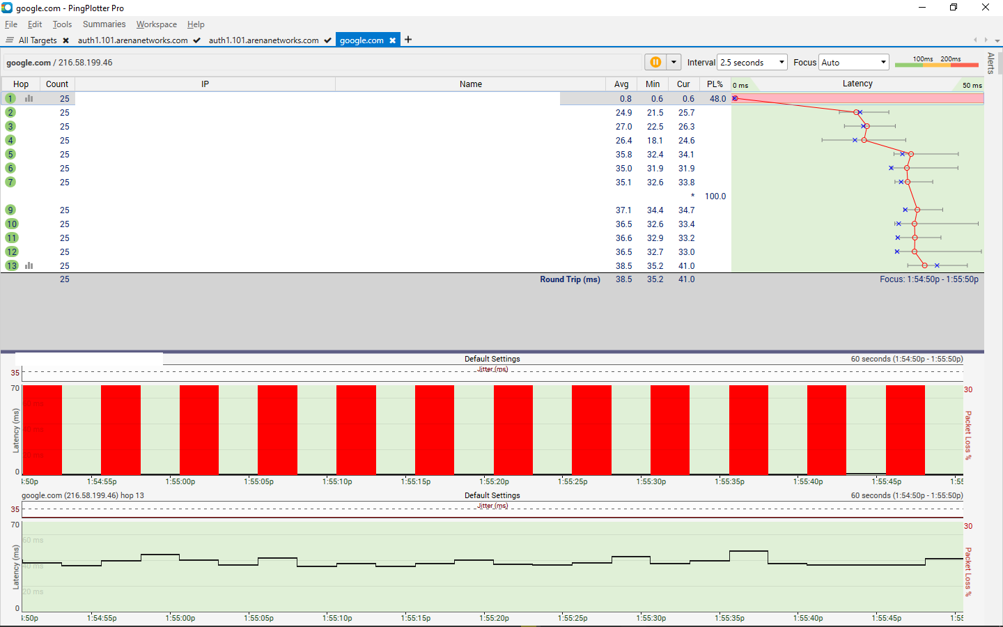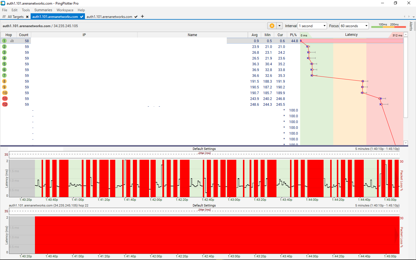 Finally, to address the general web traffic issues you're having, I'd point you in the same direction as I did when diagnosing your gaming issues. Start a trace to the service you're trying to access (like YouTube), and leave it running for the entirety of the time that you're using the service. Try and make those correlations between network symptoms and PingPlotter data! Is there anything sticking out of place?