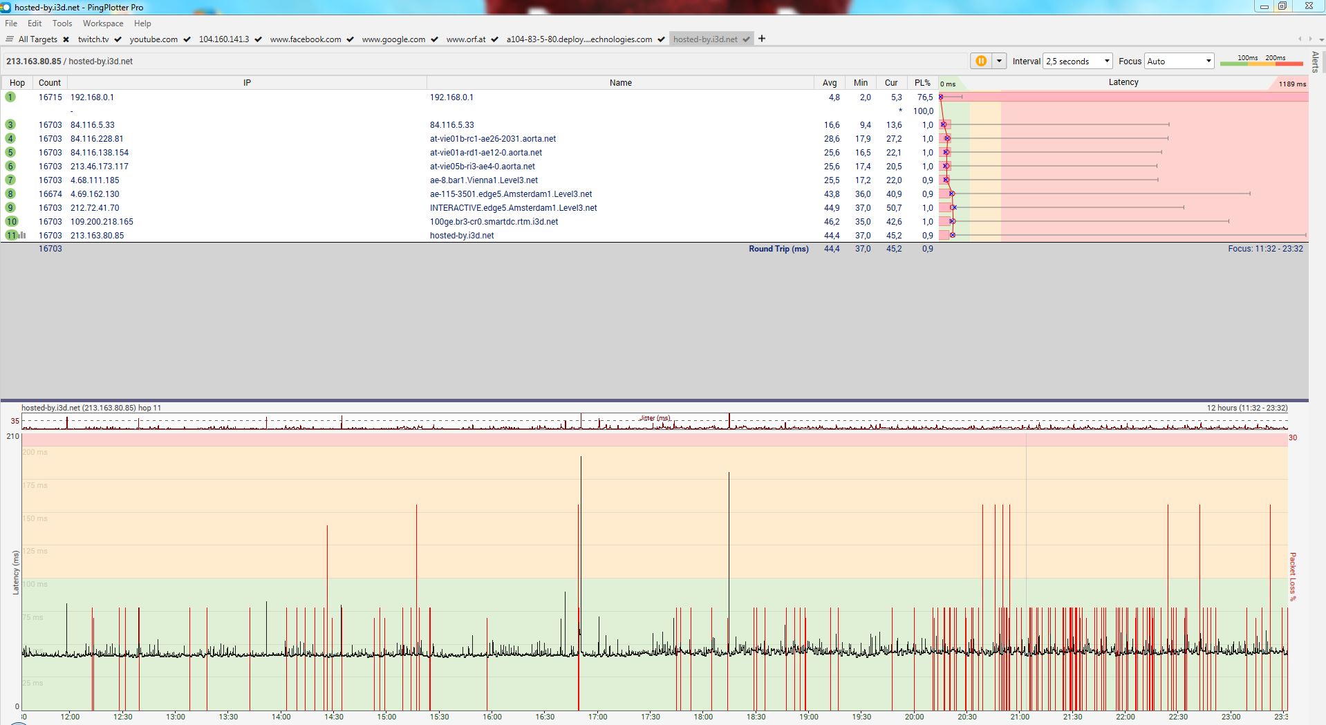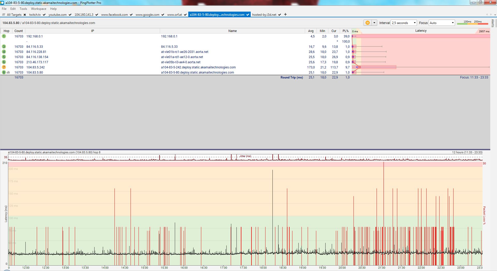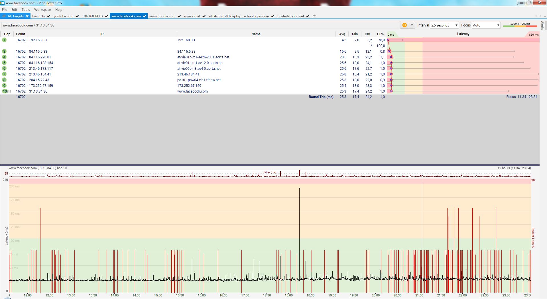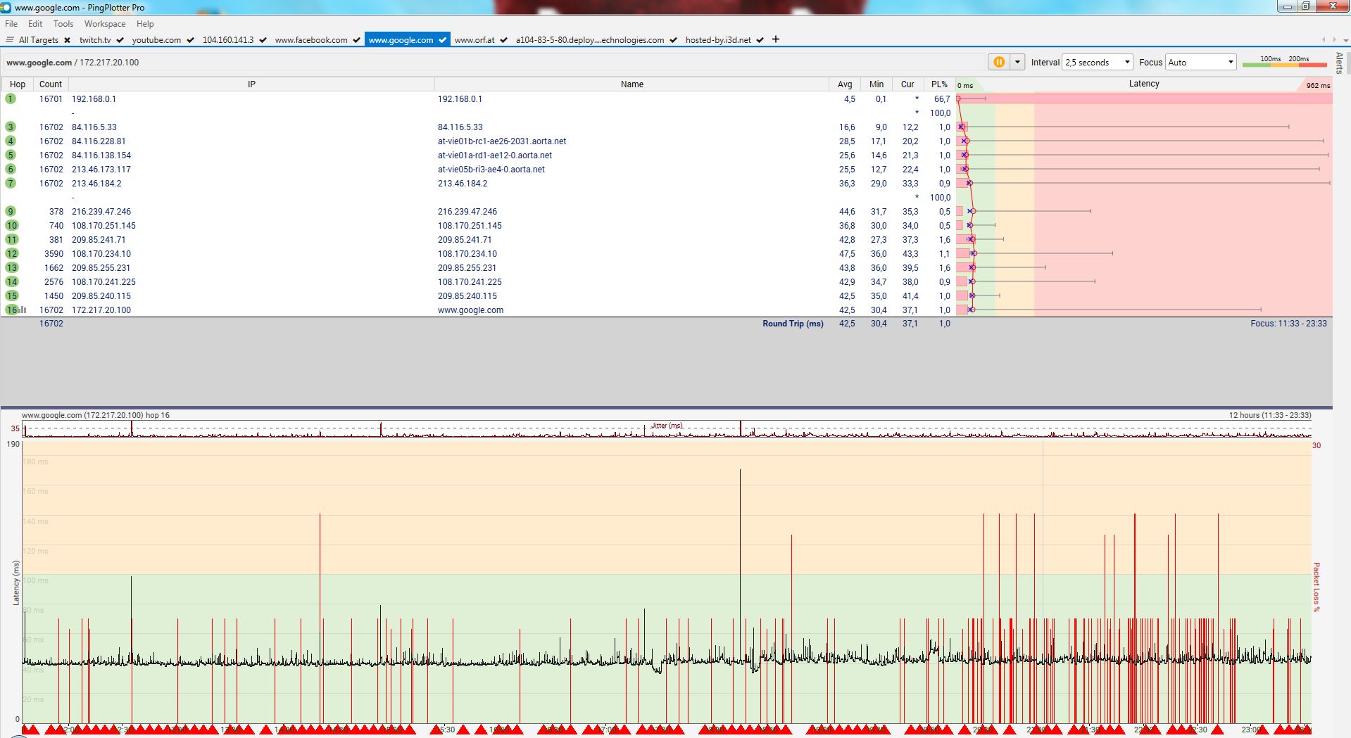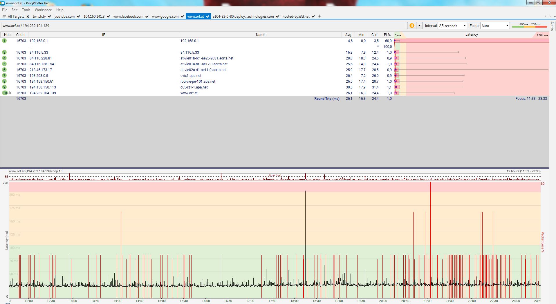 In case anybody is interested, I have exported the PingPlotter project and could upload it here.